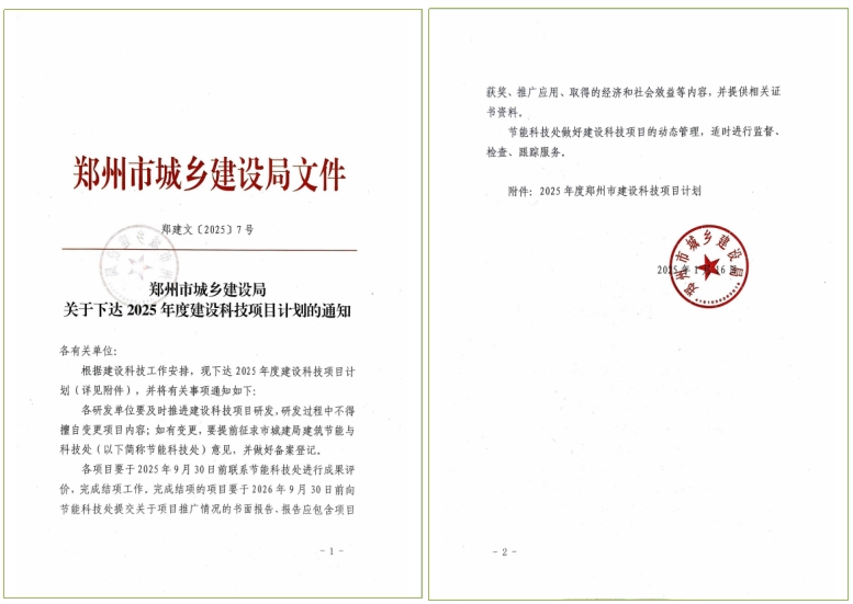 郑州市城乡建设局关于下达2025年度建设科技项目计划的通知